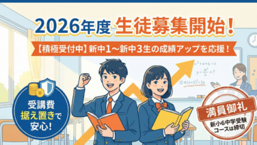 【新年度】新規生徒募集に関していつも当塾のブログをご覧いただきありがとうございます。本日は、2026年度の新年度生募集に関する大切なお知らせがございます。2026年度授業料に関して昨今の物価高騰の影響もありますが、当塾では2026年度の「授...