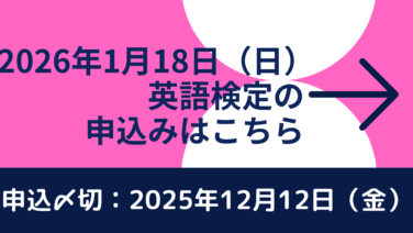 各種検定 【2026年1月18日実施】英語検定の外部の方の申込み受付について 2025年度第3回英語検定の申込み受付について 英語検定の受検申込の外部の方の受験受付を開始します。 今回は3級・準2級・2級の受付を致します。 1次免除の方の受付も可能です。 申込受付ページより申込をお願い致します。 2025年度第3回英... 2025.11.12 各種検定教室からのお知らせ英語検定