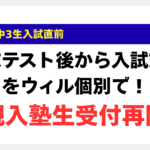 冬期講習から受験までの短期間になりますが、中3受験生を若干名受付します。あなたの志望校の過去問対策を行います。