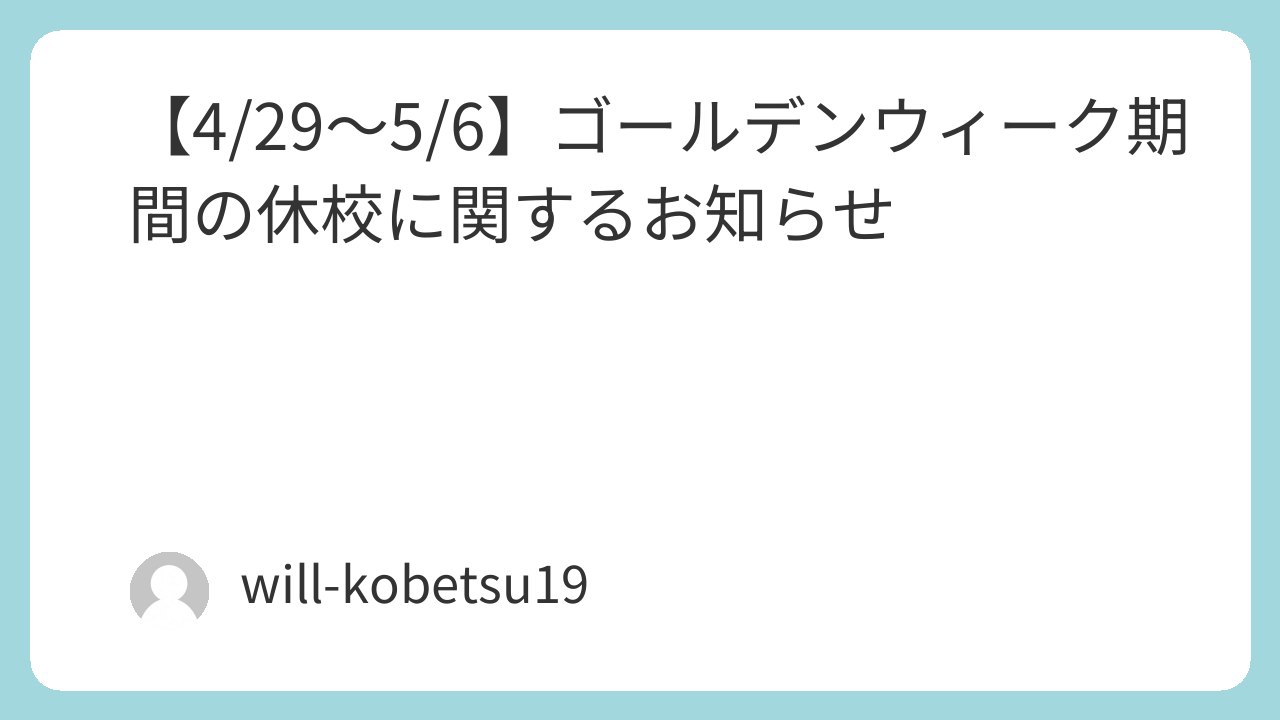 【4/29~5/6】GW休校期間に関するお知らせ