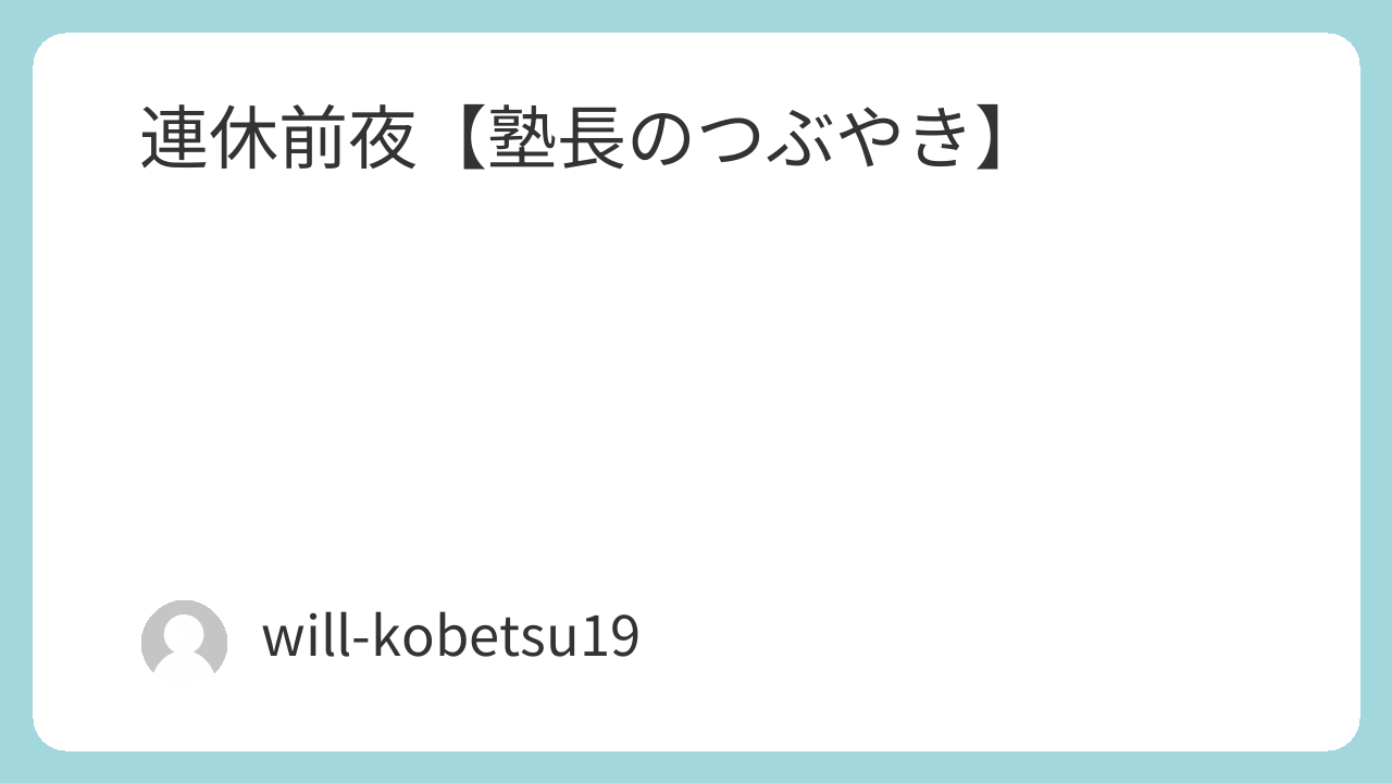 連休前夜【塾長のつぶやき】